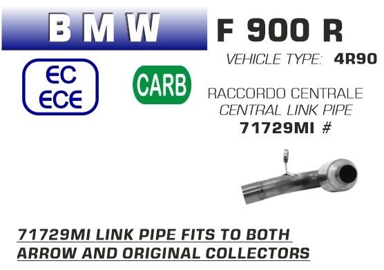 Arrow mid-pipe / centrale linkpipe voor de BMW F 900 R en F 900 XR 2020-2024
