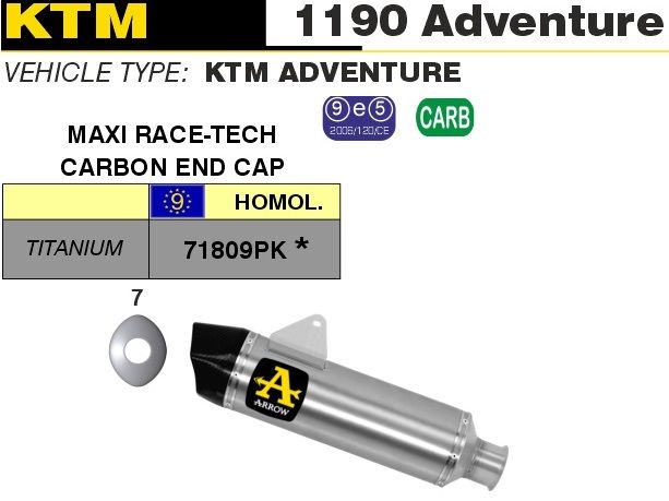Arrow Maxi Race-Tech Titanium uitlaat met Carbon eindkap, artikelnummer 71809PK voor onder andere KTM 1190 Adventure 2013 2016