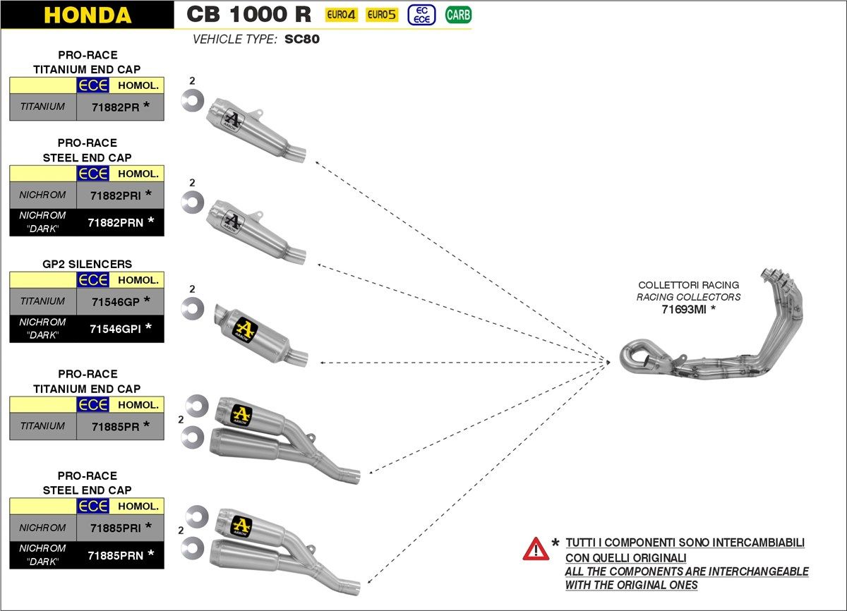 Arrow Pro-Race Nichrom Dark uitlaat, artikelnummer 71882PRN voor onder andere Honda CB 1000 R 2018 2020