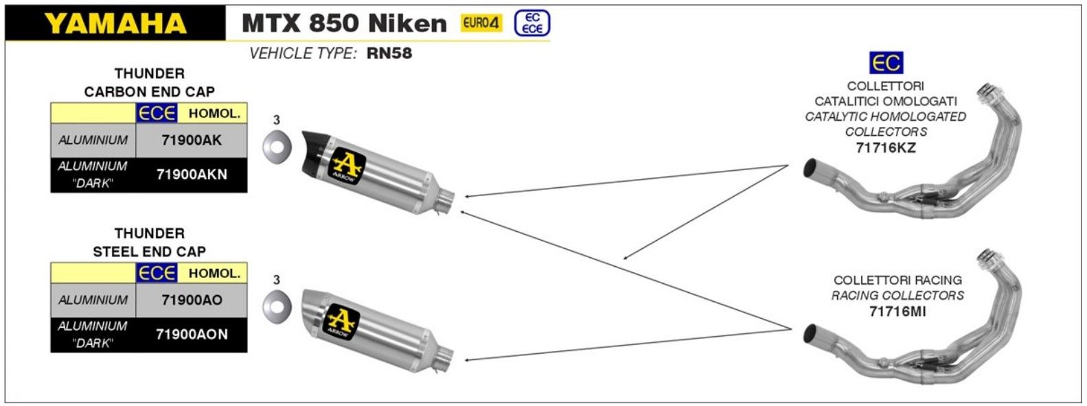 Arrow Thunder Aluminium-Dark uitlaat, artikelnummer 71900AON voor Yamaha MTX 850 Niken 2018-2020