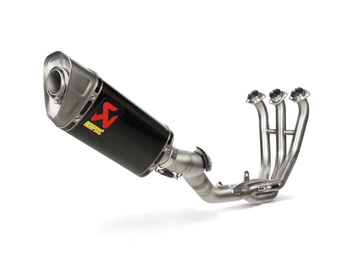 Akrapovic Racing Line Carbon voor Yamaha Tracer 9/GT 2021-2022. Deze uitlaat heeft een lichtgewicht Carbon uitlaatdemper en hitteschild, gecombineerd met roestvrijstalen verbindingspijpen en spruitstukken en afgewerkt met een titanium eindkap, om een systeem te produceren dat 2,2 kg (31%) lichter is dan standaard. Het nieuwe ontwerp heeft een kortere uitlaatdemper voor een verbeterde sportieve look, die aan de zijkant van de motor uitkomt voor een visuele impact. Het vermogen is toegenomen met 3,3 kW (4,5 pk) bij 9.600 tpm in vergelijking met back-to-back tests op een Tracer 9 met een Racing Line (koolstof) uitlaat en een standaard uitlaatsysteem. Het sportieve racegeluid is perfect afgestemd op de motor. Het is ontworpen voor gebruik op banen en wedstrijdcircuits. Dankzij de plug-and-play-fitting is een remapping niet nodig. Het uitlaatsysteem is compatibel met Yamaha koffers en accessoires voor de middenstandaard.