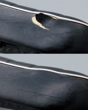 Reparatiesticker 11x17 cm voor het repareren van een buddyseat met een scheurtje of een gaatje. Gemaakt van dik imitatie-leer met een goede plaklaag. Je kan hem eventueel zelf bijknippen tot de gewenste vorm als je niet het hele velletje nodig hebt voor reparatie van je motorzadel.