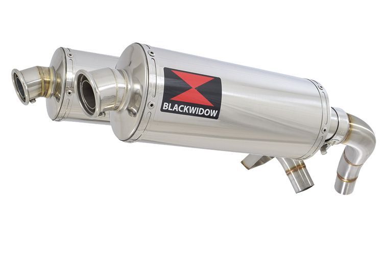 Nieuwe set RVS uitlaten voor je Honda ST1100 Pan European, ter vervanging van je originele stalen uitlaten.