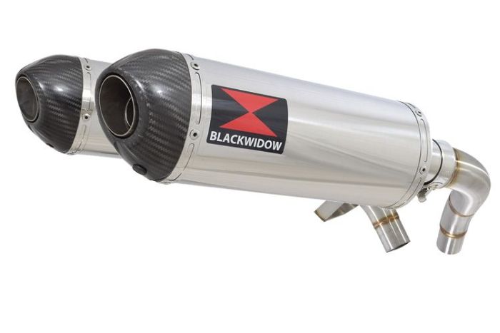 Nieuwe set RVS uitlaten voor je Honda ST1100 Pan European, ter vervanging van je originele stalen uitlaten.