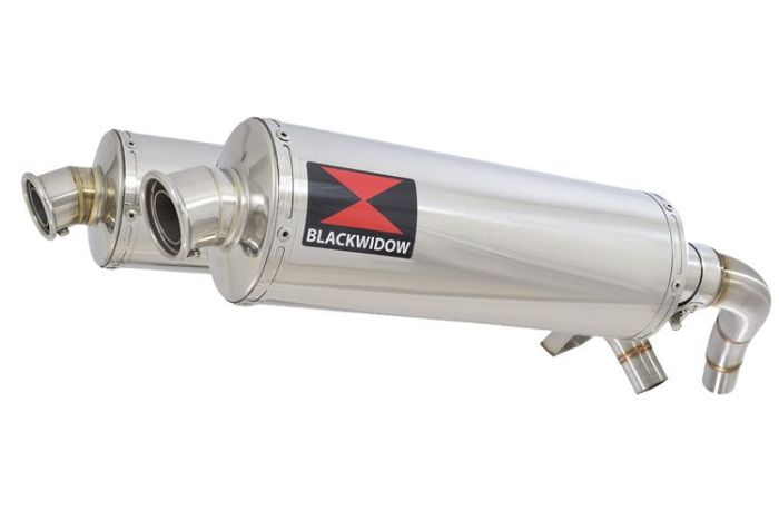 Nieuwe set RVS uitlaten voor je Honda ST1100 Pan European, ter vervanging van je originele stalen uitlaten.