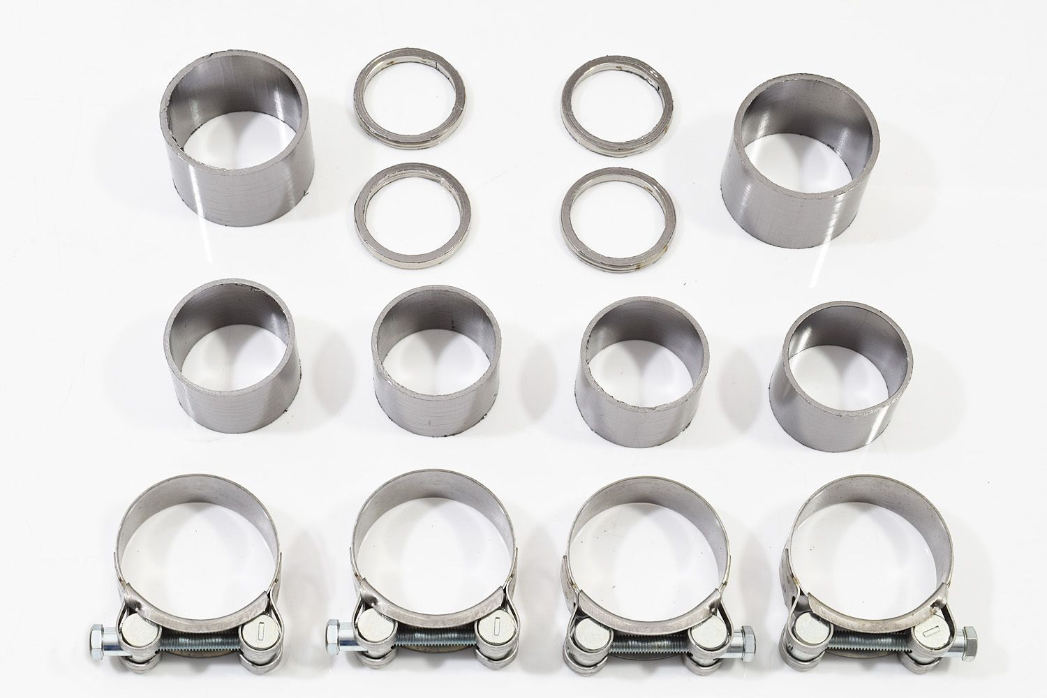 Kit bevat: 2 x demper-collector pakkingen, 4 x bocht-Collector pakkingen, 4x RVS Collectorklemmen