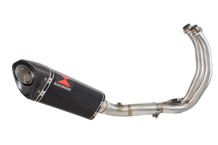 BWE Volledig De-Cat systeem met 300mm Tri-Oval Zwart RVS einddemper met carbon endcap voor YAMAHA MT-07 2021-2024