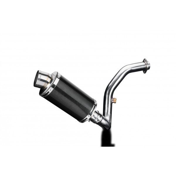 De Oval demper van Delkevic is gemaakt van Carbon. De lengte van de demper is 225mm. De uitlaatbochten zijn gemaakt van RVS.