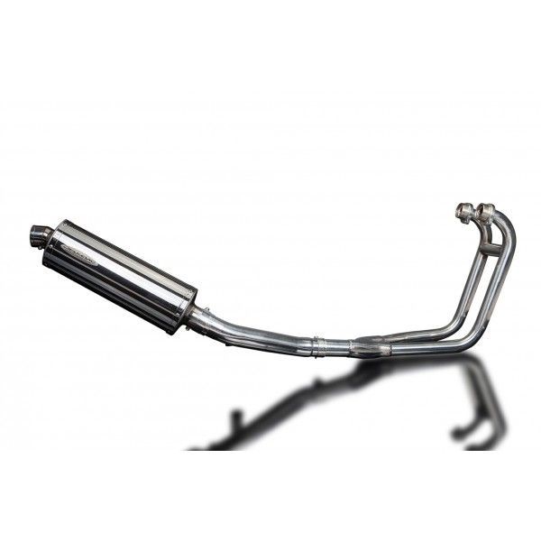 De Oval demper van Delkevic is gemaakt van RVS. De lengte van de demper is 350mm. De uitlaatbochten zijn gemaakt van RVS.