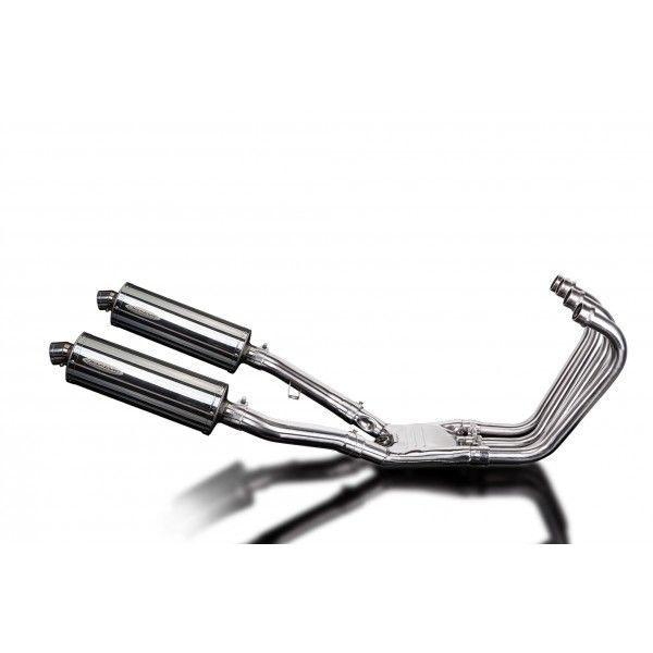 De Oval demper van Delkevic is gemaakt van RVS. De lengte van de demper is 350mm. De uitlaatbochten zijn gemaakt van RVS.