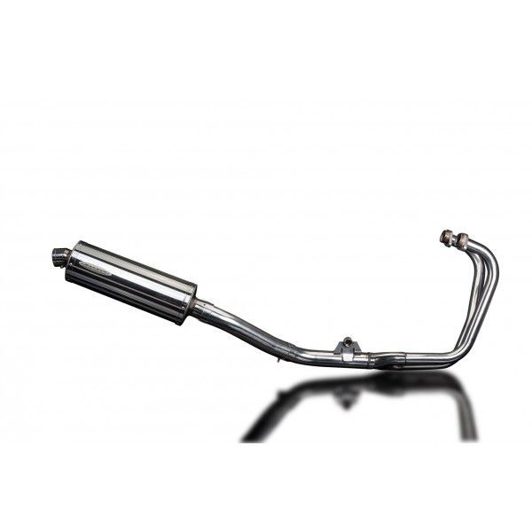 De Oval demper van Delkevic is gemaakt van RVS. De lengte van de demper is 350mm. De uitlaatbochten zijn gemaakt van RVS.