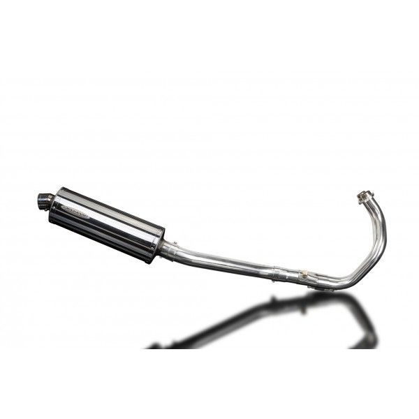 De Oval demper van Delkevic is gemaakt van RVS. De lengte van de demper is 350mm. De uitlaatbochten zijn gemaakt van RVS.