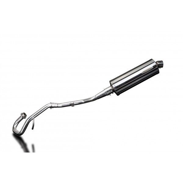 De Oval demper van Delkevic is gemaakt van RVS. De lengte van de demper is 350mm. De uitlaatbochten zijn gemaakt van RVS.