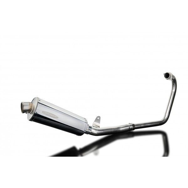 De Oval demper van Delkevic is gemaakt van RVS. De lengte van de demper is 350mm. De uitlaatbochten zijn gemaakt van RVS.