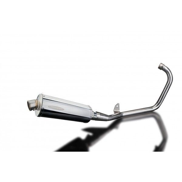 De Oval demper van Delkevic is gemaakt van RVS. De lengte van de demper is 350mm. De uitlaatbochten zijn gemaakt van RVS.