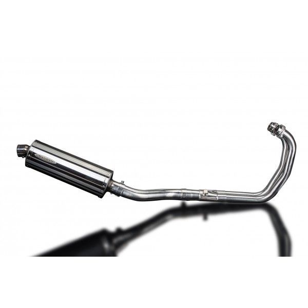 De Oval demper van Delkevic is gemaakt van RVS. De lengte van de demper is 350mm. De uitlaatbochten zijn gemaakt van RVS.