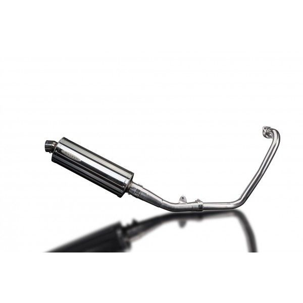 De Oval demper van Delkevic is gemaakt van RVS. De lengte van de demper is 350mm. De uitlaatbochten zijn gemaakt van RVS.