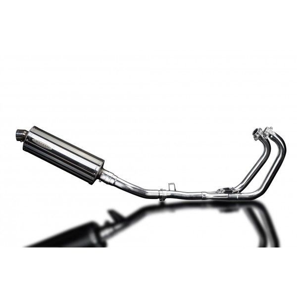 De Oval demper van Delkevic is gemaakt van RVS. De lengte van de demper is 350mm. De uitlaatbochten zijn gemaakt van RVS.