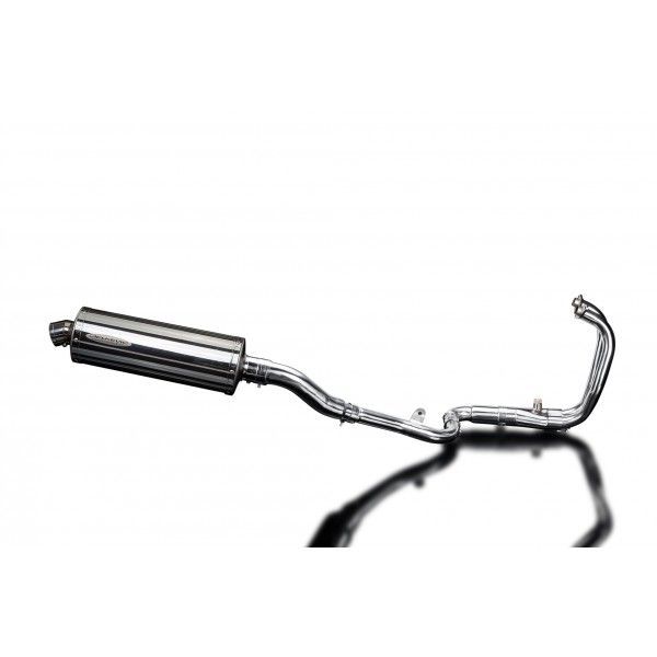 De Oval demper van Delkevic is gemaakt van RVS. De lengte van de demper is 350mm. De uitlaatbochten zijn gemaakt van RVS.
