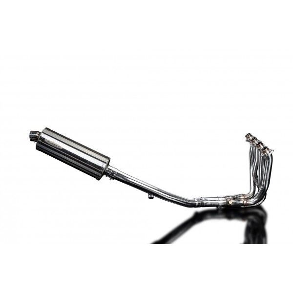 De Oval demper van Delkevic is gemaakt van RVS. De lengte van de demper is 350mm. De uitlaatbochten zijn gemaakt van RVS.