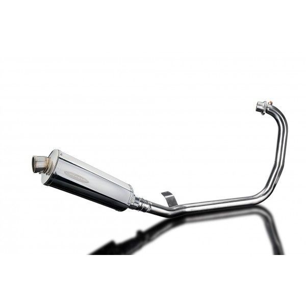 De Oval demper van Delkevic is gemaakt van RVS. De lengte van de demper is 350mm. De uitlaatbochten zijn gemaakt van RVS.