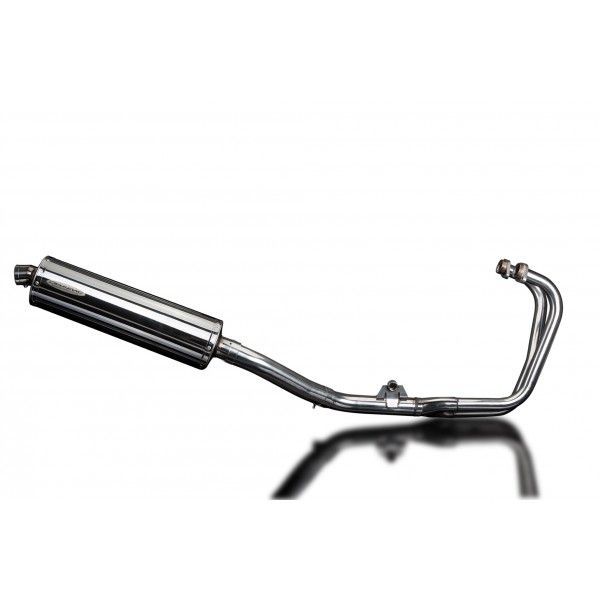 De Oval demper van Delkevic is gemaakt van RVS. De lengte van de demper is 450mm. De uitlaatbochten zijn gemaakt van RVS.