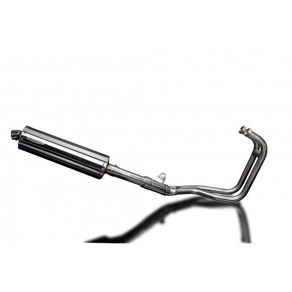 De Oval demper van Delkevic is gemaakt van RVS. De lengte van de demper is 450mm. De uitlaatbochten zijn gemaakt van RVS.