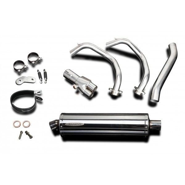De Oval demper van Delkevic is gemaakt van RVS. De lengte van de demper is 450mm. De uitlaatbochten zijn gemaakt van RVS.