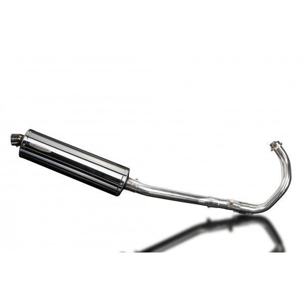 De Oval demper van Delkevic is gemaakt van RVS. De lengte van de demper is 450mm. De uitlaatbochten zijn gemaakt van RVS.