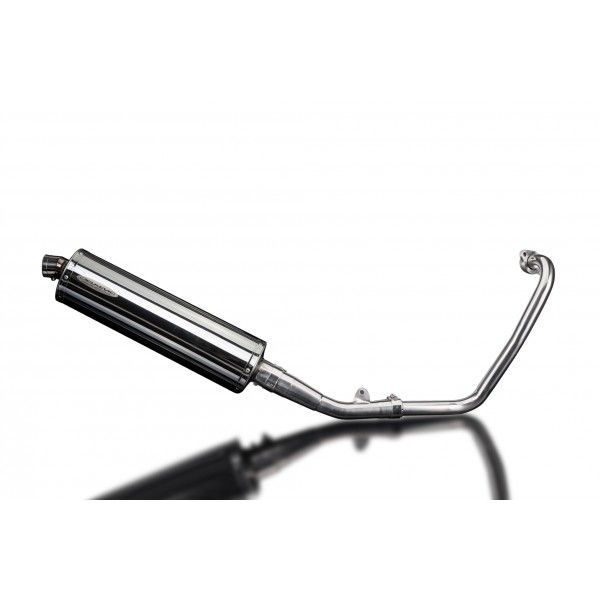 De Oval demper van Delkevic is gemaakt van RVS. De lengte van de demper is 450mm. De uitlaatbochten zijn gemaakt van RVS.