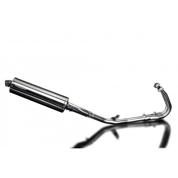 De Oval demper van Delkevic is gemaakt van RVS. De lengte van de demper is 450mm. De uitlaatbochten zijn gemaakt van RVS.