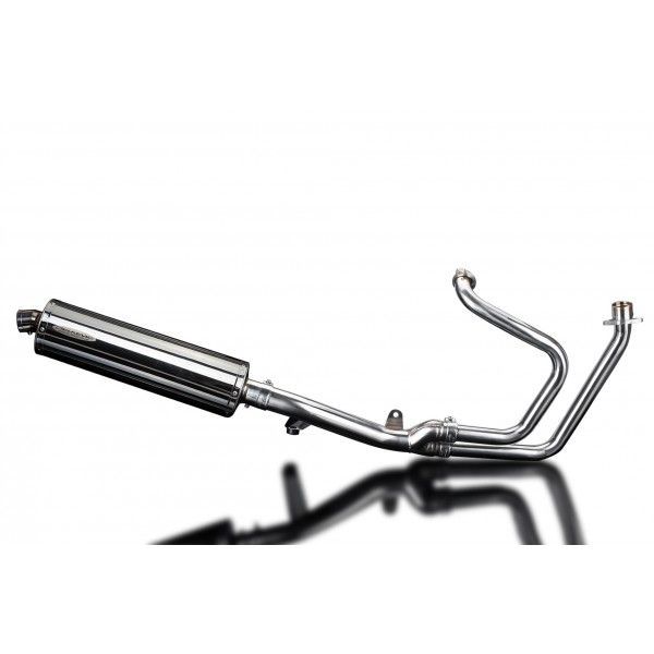 De Oval demper van Delkevic is gemaakt van RVS. De lengte van de demper is 450mm. De uitlaatbochten zijn gemaakt van RVS.