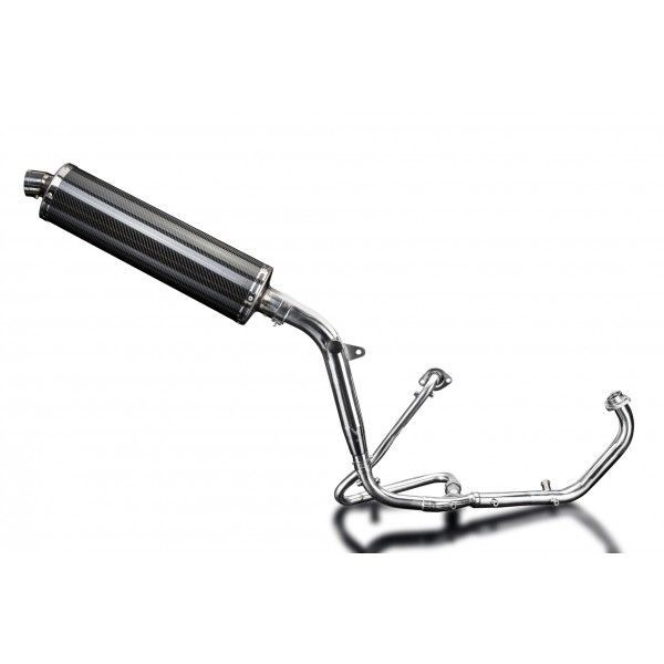 De Oval demper van Delkevic is gemaakt van Carbon. De lengte van de demper is 450mm. De uitlaatbochten zijn gemaakt van RVS.