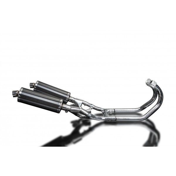 De Oval demper van Delkevic is gemaakt van Carbon. De lengte van de demper is 350mm. De uitlaatbochten zijn gemaakt van verchroomd staal.