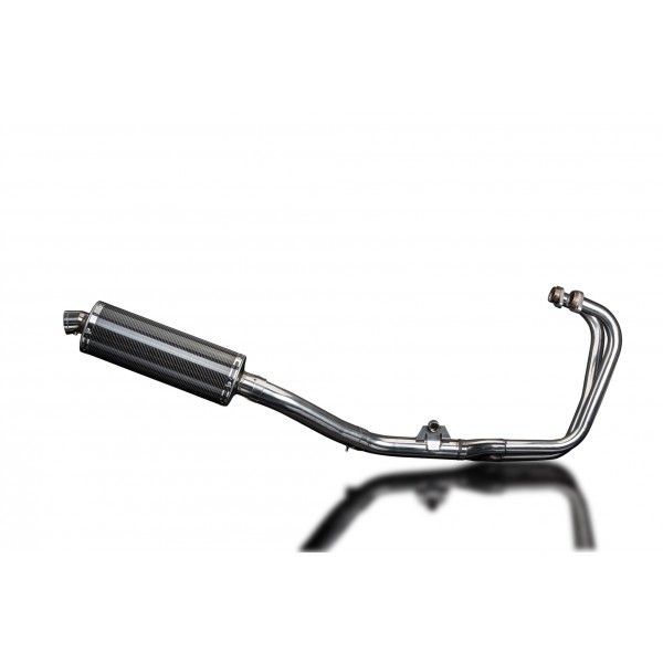 De Oval demper van Delkevic is gemaakt van Carbon. De lengte van de demper is 350mm. De uitlaatbochten zijn gemaakt van RVS.