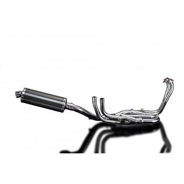 De Oval demper van Delkevic is gemaakt van Carbon. De lengte van de demper is 350mm. De uitlaatbochten zijn gemaakt van RVS.