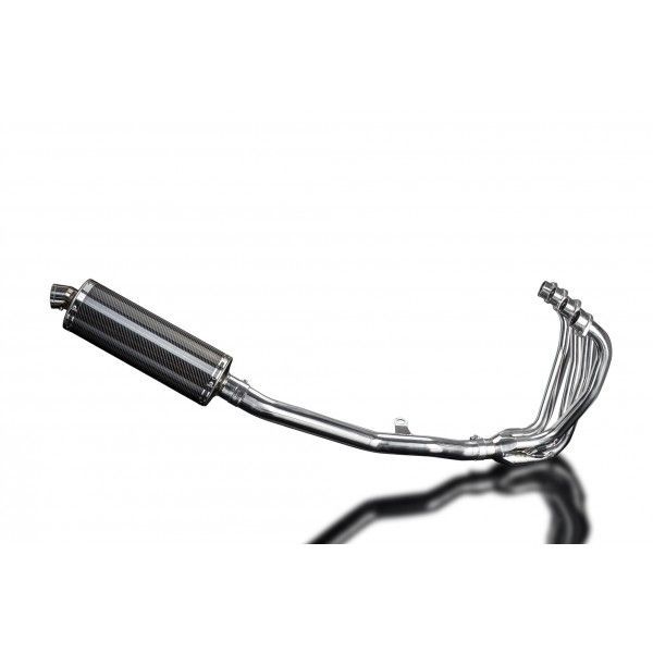 De Oval demper van Delkevic is gemaakt van Carbon. De lengte van de demper is 350mm. De uitlaatbochten zijn gemaakt van RVS.
