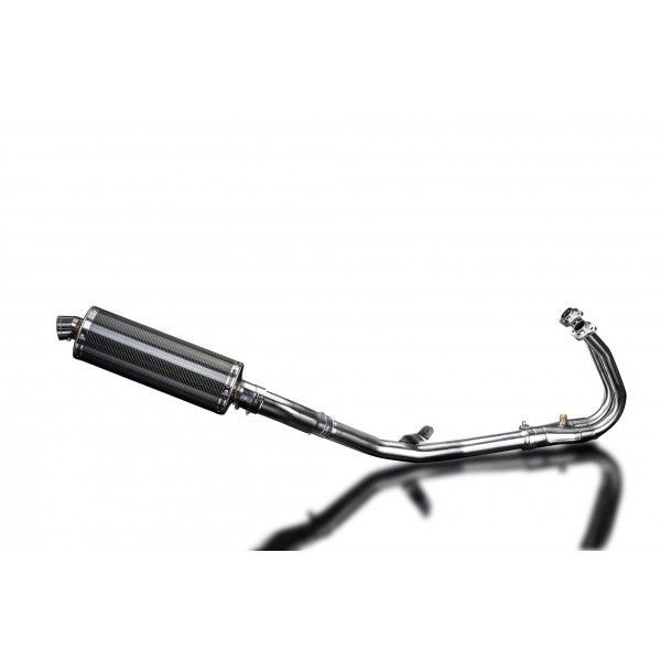 De Oval demper van Delkevic is gemaakt van Carbon. De lengte van de demper is 350mm. De uitlaatbochten zijn gemaakt van RVS.
