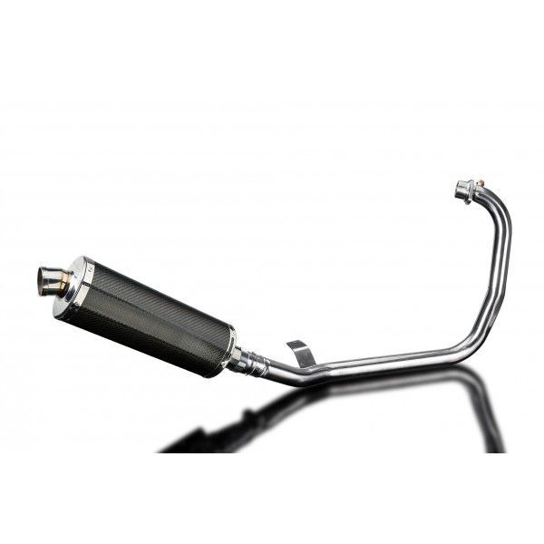 De Oval demper van Delkevic is gemaakt van Carbon. De lengte van de demper is 350mm. De uitlaatbochten zijn gemaakt van RVS.