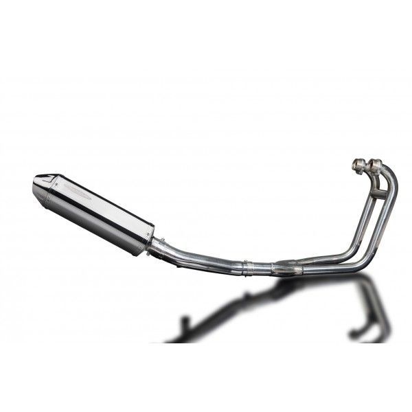 De Tri-Oval demper van Delkevic is gemaakt van RVS. De lengte van de demper is 320mm. De uitlaatbochten zijn gemaakt van RVS.