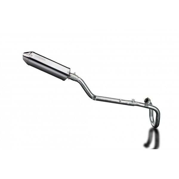 De Tri-Oval demper van Delkevic is gemaakt van RVS. De lengte van de demper is 320mm. De uitlaatbochten zijn gemaakt van RVS.