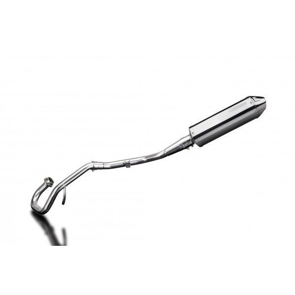 De Tri-Oval demper van Delkevic is gemaakt van RVS. De lengte van de demper is 320mm. De uitlaatbochten zijn gemaakt van RVS.