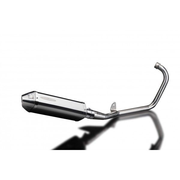 De Tri-Oval demper van Delkevic is gemaakt van RVS. De lengte van de demper is 320mm. De uitlaatbochten zijn gemaakt van RVS.