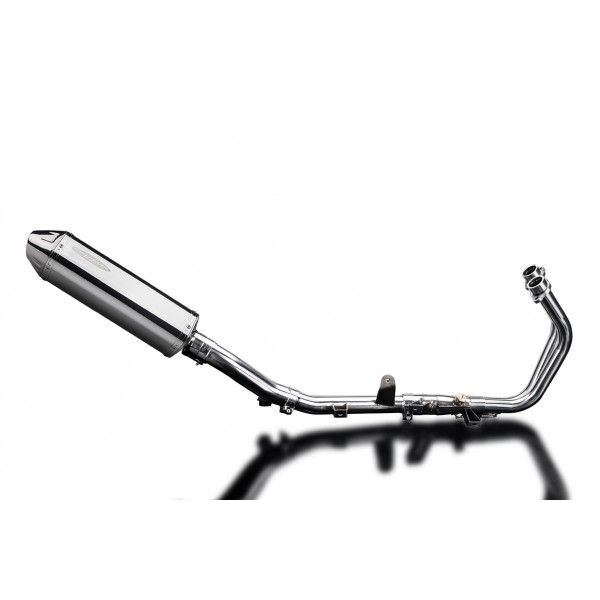 De Tri-Oval demper van Delkevic is gemaakt van RVS. De lengte van de demper is 320mm. De uitlaatbochten zijn gemaakt van RVS.
