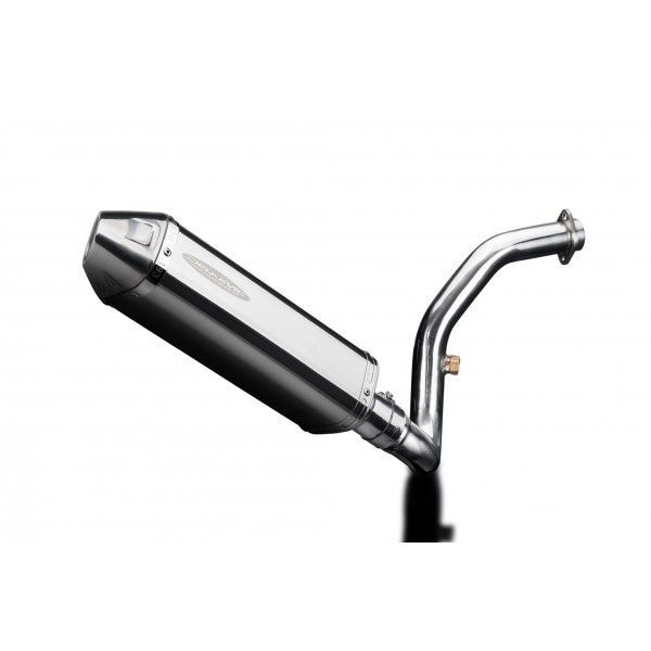 De Tri-Oval demper van Delkevic is gemaakt van RVS. De lengte van de demper is 320mm. De uitlaatbochten zijn gemaakt van RVS.
