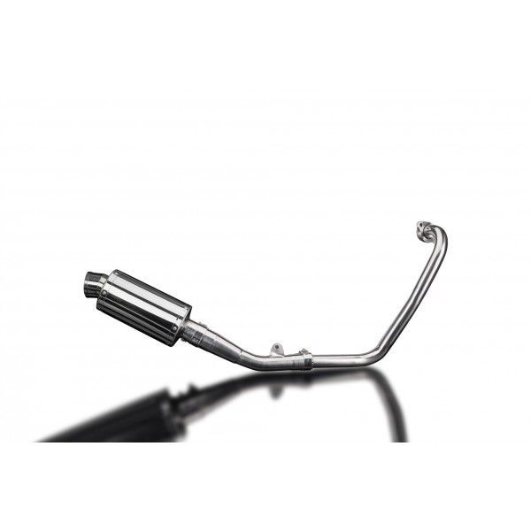 De Oval demper van Delkevic is gemaakt van RVS. De lengte van de demper is 225mm. De uitlaatbochten zijn gemaakt van RVS.