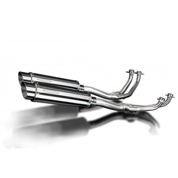 De Round demper van Delkevic is gemaakt van RVS. De lengte van de demper is 350mm. De uitlaatbochten zijn gemaakt van RVS.