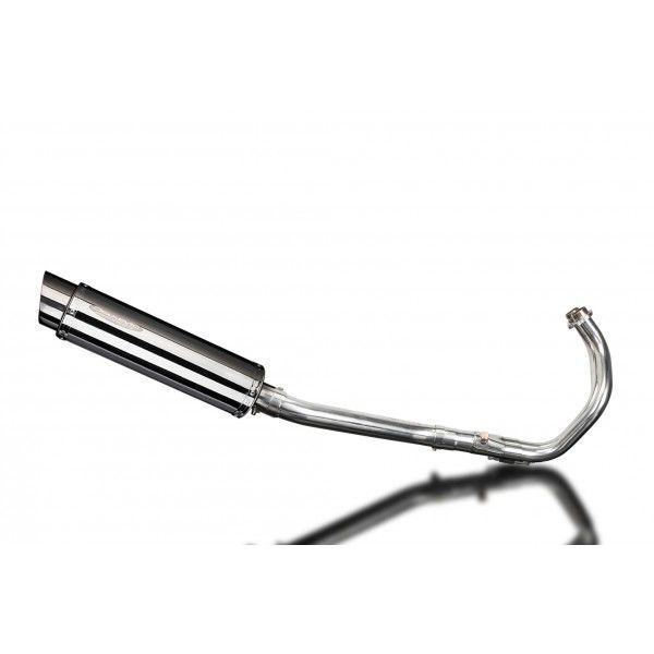 De Round demper van Delkevic is gemaakt van RVS. De lengte van de demper is 350mm. De uitlaatbochten zijn gemaakt van RVS.