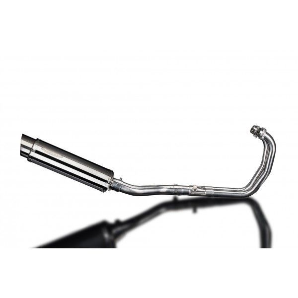 De Round demper van Delkevic is gemaakt van RVS. De lengte van de demper is 350mm. De uitlaatbochten zijn gemaakt van RVS.