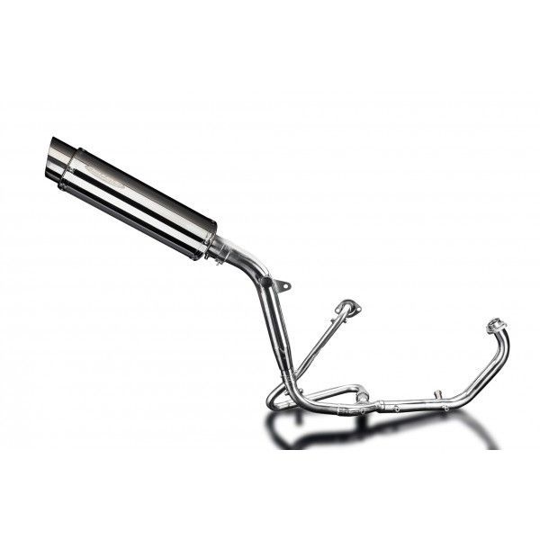 De Round demper van Delkevic is gemaakt van RVS. De lengte van de demper is 350mm. De uitlaatbochten zijn gemaakt van RVS.